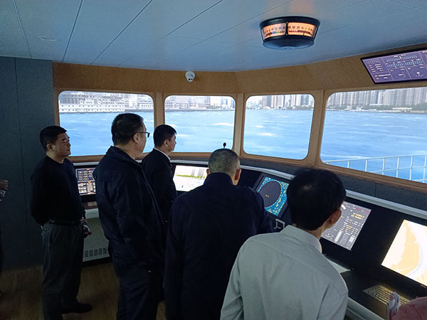 会后,陈典聪一行参观了航海模拟器实验室、轮机模拟器实验室以及各个实训场地等。