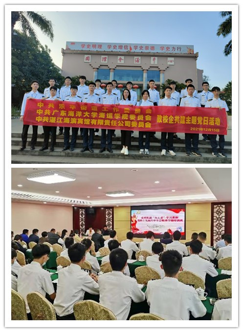 党委与乐华街道党工委等在湛江海滨宾馆联合举办学习贯彻党的十九届六中全会精神专题培训班暨共建主题党日活动,湛江市委党校刘国军教授受邀出席活动并为共建双方作首场党课讲座,讲座由乐华街道党工委书记陈赞如主持。