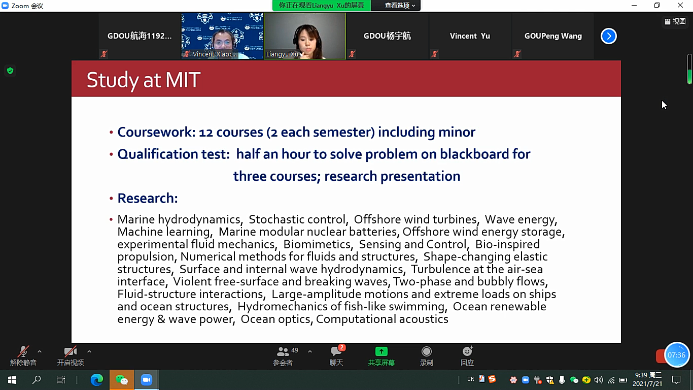 贾宝柱院长与新奥尔良大学余小川老师的共同努力下,此次暑期线上短期教学活动得到顺利开展。学生在教学参与过程中,积极的向知名教授和工程师学习先进的科学知识与方法,对船海工程领域的发展有了更深入、更全面的理解,开拓了视野和研究思路,提高了英语沟通能力。同学们纷纷表示,海外名校的线上课程有助于明确未来个人发展方向,为后续的就业与深造打下了坚实的基础。