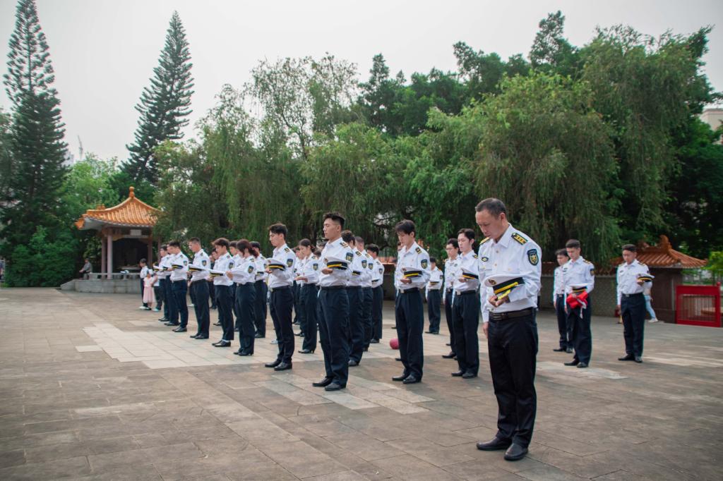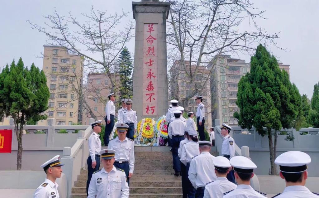 2021级航海中队学生代表步行前往菉塘村革命烈士陵园开展“缅怀革命先烈,传承红色基因”清明祭英烈活动。本次活动由米高梅