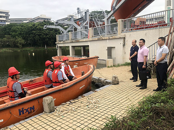 4月26日上午,广东海事局船员处郑永炳副处长、湛江海事局船员处处长邓平贵等一行到湖光校区现场调研米高梅参加中国船员技能大比武备赛情况。米高梅