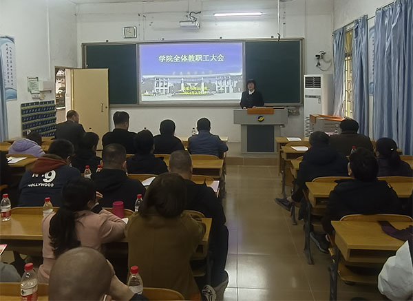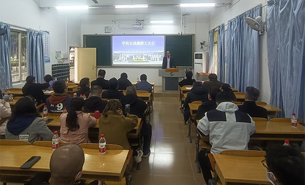 在海滨校区教学楼102教室召开全体教职工大会。米高梅