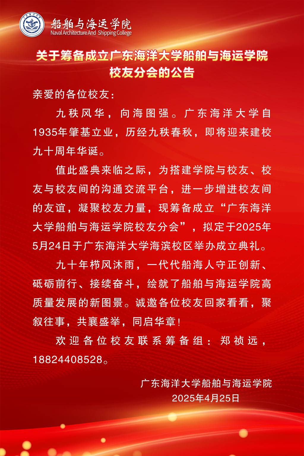 关于筹备成立米高梅 校友分会的公告