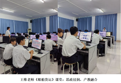 5 月 26 日,王维老师在实验楼602教室进行了《船舶货运》实验课教学展示。课程以国家级一流课程为依托,采用SPOC平台课前线上知识推送,线下针对性重点讲解的混合式教学模式。通过集装箱船舶配载系统实操,系统讲授了集装箱船配积载操作的全流程知识。此外,王老师巧妙地将“科学思维”、“工程伦理”、“敬业报国”等思政元素有机融入专业教学,通过货运力学知识讲解、行业先驱事迹分享以及天津港“无人化”集装箱码头案例分析,实现了知识传授与价值引领的有机结合。