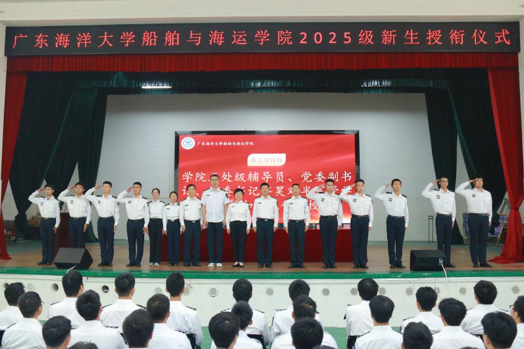 首先,齐昊宣布了新一届半军管学生干部名单,并为半军管学生干部和2025级学生代表佩戴了“一道杠”校衔。随后,邓朝晖总结讲话,强调了半军事化管理对航海类专业学生成长成才的重要意义,要求大家严格遵守米高梅