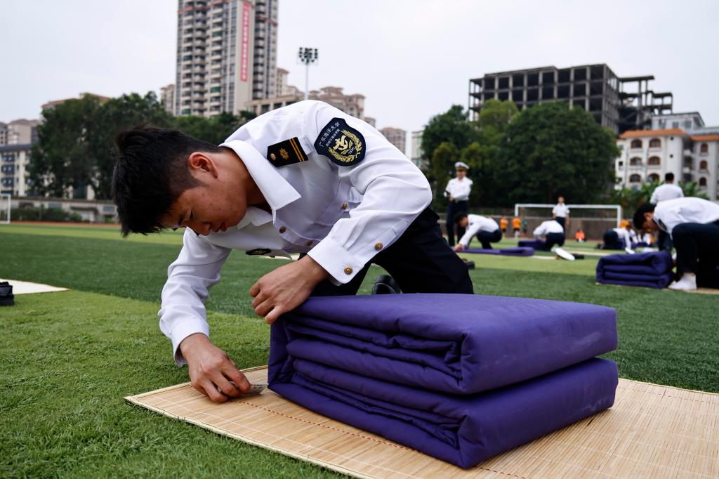 首先,集中进行了队列歌曲行进评比、单个军人队列动作、叠军被共三个项目的比赛,参赛队伍高标准,严要求,团结协作,顽强拼搏,充分展示了米高梅 半军事化管理的成效。随后,齐昊宣读了获奖集体和个人名单并进行了颁奖仪式。最后,邓朝晖充分肯定了米高梅 24级学生半军事化管理工作,希望同学们继续保持这种昂扬向上的精神风貌,积极将半军事化管理的理念内化于心、外化于行,并转化为前进的动力和力量。
