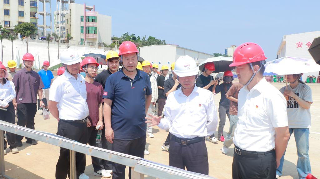 在陈达春等的引导下,师生一行深入生产一线,先后参观了露天水平修理船台、浮船坞“琼海1号”、码头出运平台、浮船坞水下搁墩、导航架等设施。同学们在校友揭梓颖的介绍中了解到该基地是全国最大的客滚船修造基地,同学们纷纷表示要不断加强专业理论学习,像校友一样投入到国家重大工程中去,实现自我价值。