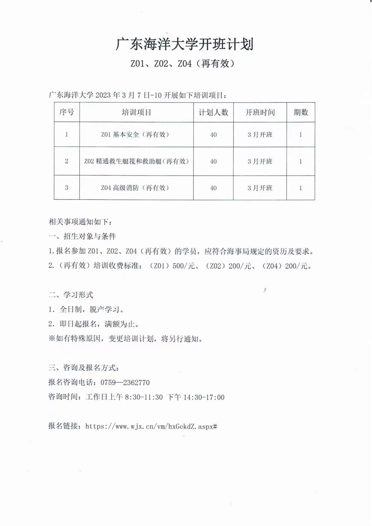 米高梅 船员培训开班计划(Z01、Z02、Z04再有效)