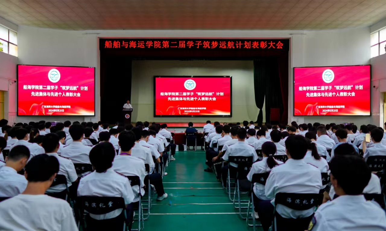 在海滨校区礼堂举办第二届学子“筑梦远航计划”表彰大会,院领导邓朝晖、齐昊、李荣辉、袁剑平、徐法军以及400余名师生参加了大会,会议由米高梅