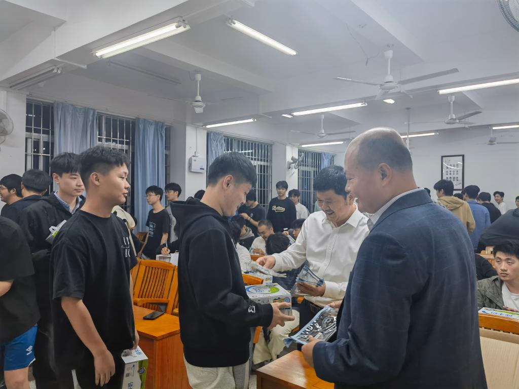 领导为同学们送上慰问品。最后,袁剑平为同学们做考前辅导,并分享了考研经验与考研技巧。