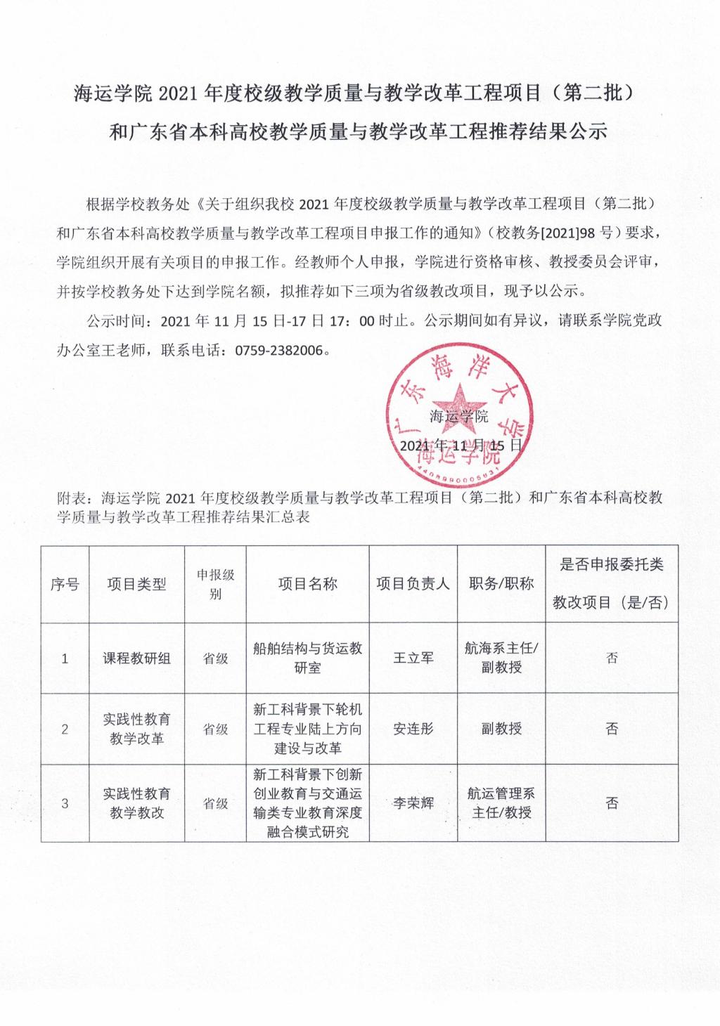 海运米高梅 2021年度校级教学质量与教学改革工程项目(第二批)和广东省本科高校教学质量与教学改革工程推荐结果公示