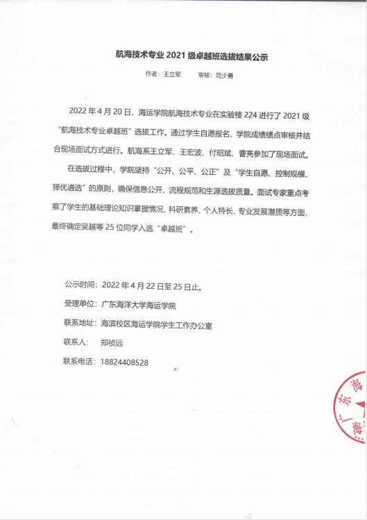 发布者:王立军 时间:2022-04-22 17:01:22 来源:航海系办公室 编辑:海运米高梅 审核:范少勇 浏览:
