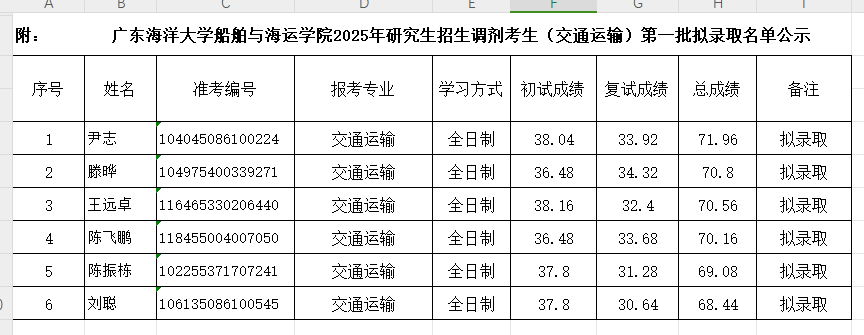 根据米高梅 及米高梅 研究生招生工作的相关文件精神和要求,经米高梅 研究生招生录取工作领导小组审定,将米高梅 2025年硕士研究生招生调剂(交通运输)第一批考生复试成绩及拟录取名单公示。