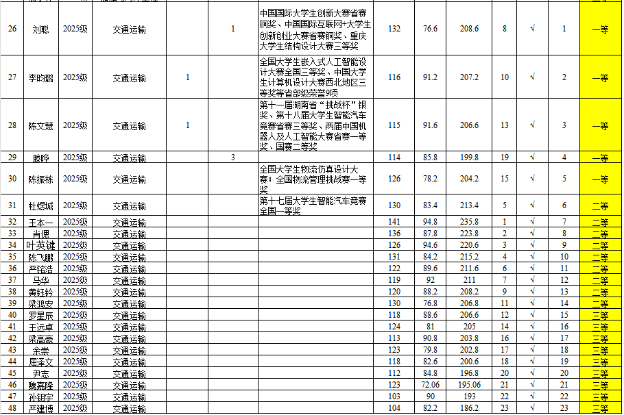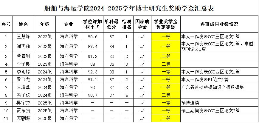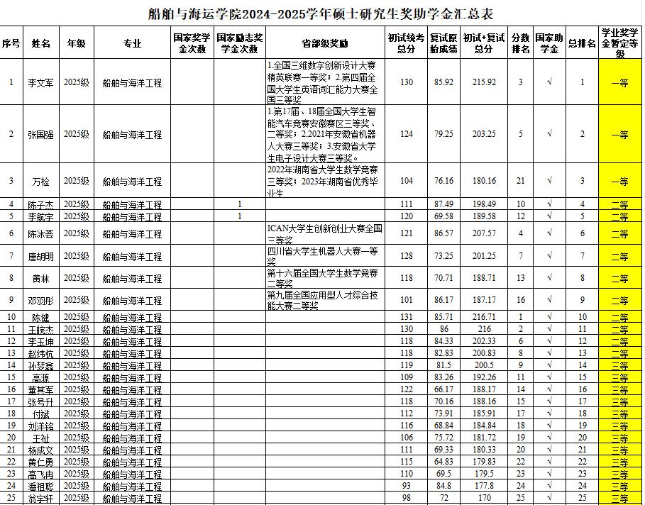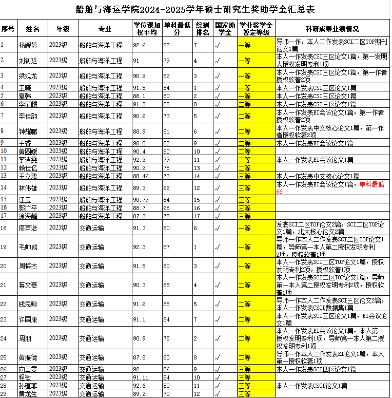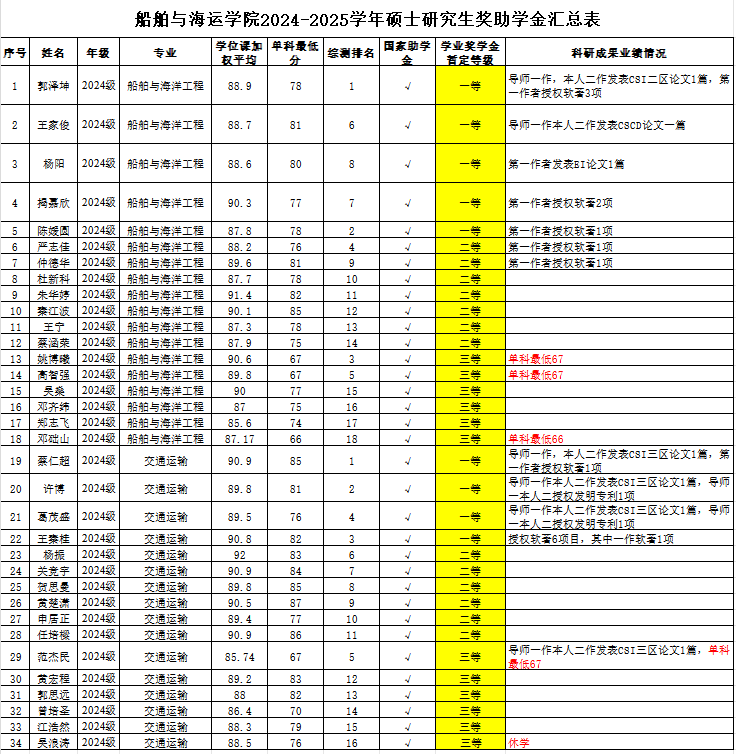 评审小组认真审核及严格评选,拟确定获得研究生助学金、学业奖学金人员名单。其中,2023级交通运输专业吴浪涛同学因休学,其奖助学金待复学后予以补发。现将评审结果进行公示(详见附表)。