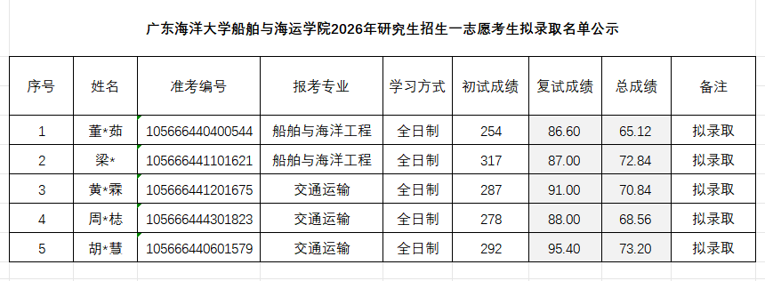 根据教育部及米高梅2026年硕士研究生招生录取相关文件要求,经米高梅 研究生招生录取工作领导小组审核确定,现将米高梅 2026年硕士研究生第一志愿考生拟录取名单予以公示(详见附件)