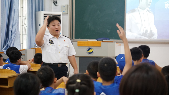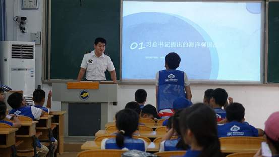 而今天,正值世界航海日这一特殊的日子,志愿者巧妙地结合习近平总书记的海洋强国战略,向同学们讲述了世界海洋日的起源与深远意义。他们强调了海洋对于国家发展的重要性,并引导同学们积极学习海洋知识,培养海洋意识,为祖国的海洋事业贡献自己的力量。
