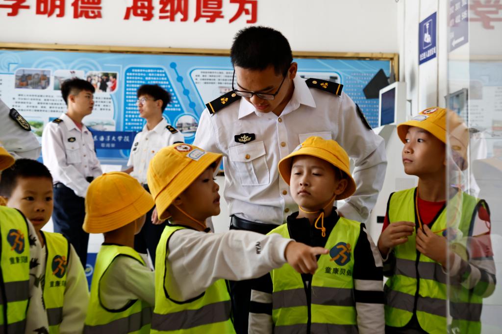 航海模拟驾驶器体验环节更是让小朋友们兴奋不已。在志愿者的带领下,小朋友们分组进入模拟驾驶舱,学习了模拟驾驶台上的仪表器械和操作方法。在志愿者的指令下,小朋友们亲自驾驶船舶,感受乘风破浪的刺激与乐趣。他们兴奋地操作着各种仪器,享受着航海带来的无限魅力。
