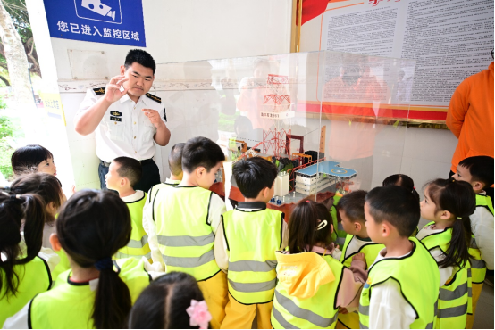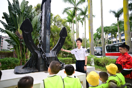 极具标志性的船锚雕塑处。现场的志愿者们热情洋溢,用通俗易懂的语言为小朋友们科普起船锚的结构与作用。从锚爪的形状设计到锚杆的稳固作用,再到整个船锚如何在船舶停靠时发挥关键力量,志愿者们讲解得细致入微,小朋友们也听得格外认真。为了留下这难忘的瞬间,小朋友们还在船锚处整齐排列,绽放出灿烂的笑容,合影留念,那一张张纯真的笑脸与船锚共同构成了一幅美好的画面。