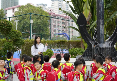的船锚旁,这个巨大的船锚立刻吸引了他们的目光。现场的志愿者亲切地给小朋友们讲起船锚的故事,从锚杆、锚爪等部件,用简单有趣的话语,让小朋友们理解船锚的构造。志愿者还通过提问、互动的方式,引导小朋友们思考,小朋友们纷纷踊跃举手,回答志愿者的问题,对回答的小朋友给予糖的奖励。
