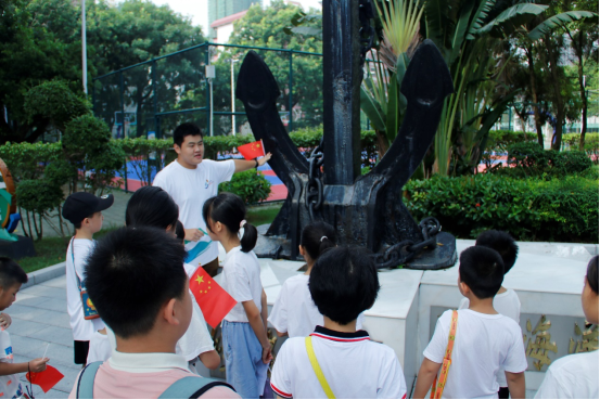 标志性的船锚雕塑前。志愿者们化身知识使者,用生动形象、通俗易懂的语言,为同学们详细介绍了船锚的作用及其工作原理。小朋友们听得津津有味,当了解到船锚竟是万吨巨轮在大海中稳如磐石的“刹车”时,眼中闪烁着好奇与惊叹的光芒,仿佛在那一刻,他们与神秘而广阔的海洋拉近了距离。